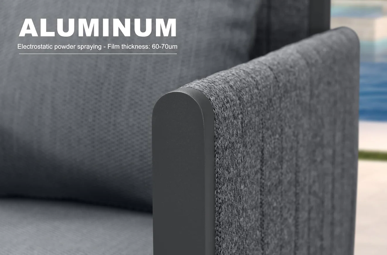 Juego de muebles de comedor de 7 piezas, moderno juego de muebles de exterior de aluminio, mesa de comedor y sillas con cojines de olefina, almohadas para jardín,