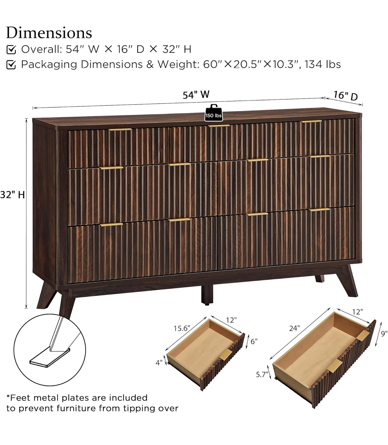 - La elegancia atemporal se une a la elegancia moderna: el distintivo panel acanalado ondulado mejora la textura y la presencia espacial de esta pieza excepcional. Las venas de nogal oscuro complementan el borde curvado liso irradia un aura de elegancia y proporciona un ambiente seguro para los más pequeños. El amplio mango de metal y las patas extendidas se suman a su ambiente contemporáneo, creando una estética personalizada y distintiva.