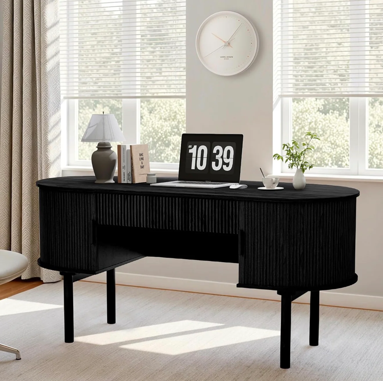 - Diseño elegante y elegante: eleva tu espacio de trabajo con nuestro moderno escritorio con puertas correderas ranuradas verticales y un tono natural para un toque sofisticado a la decoración de cualquier habitación.