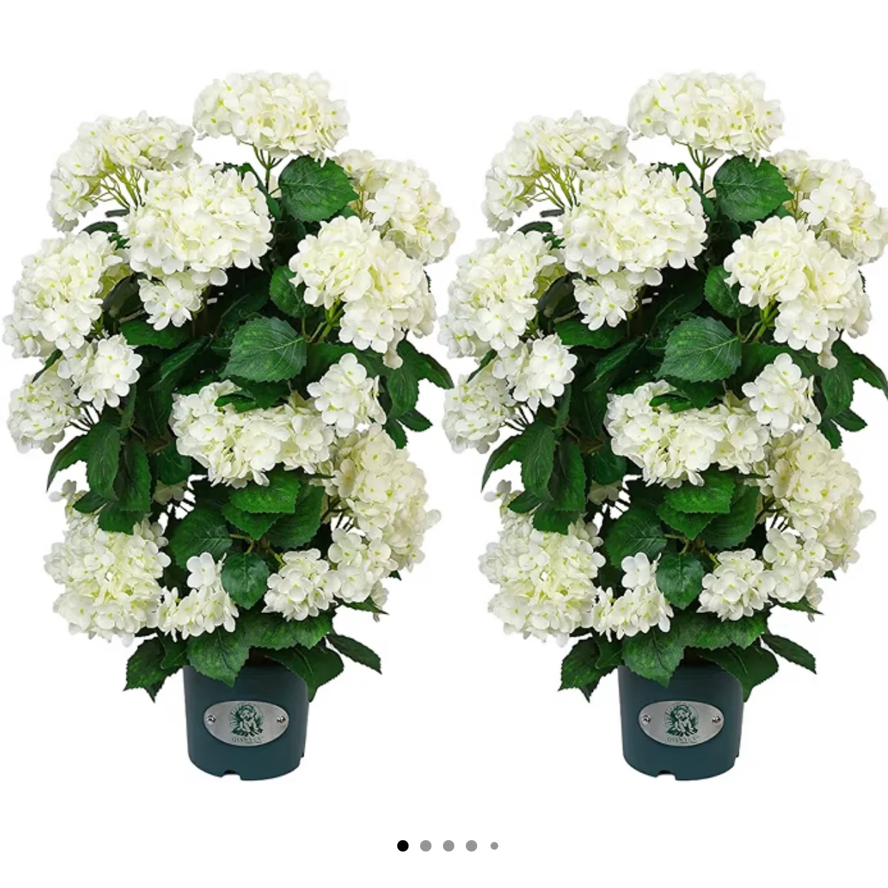 Este elegante set de 2 piezas de hortensias artificiales de 76 cm presenta flores blancas voluminosas y hojas verdes abundantes que recrean con gran realismo la apariencia de una planta natural. Su diseño equilibrado aporta un toque de frescura, luminosidad y elegancia a cualquier espacio del hogar o jardín.