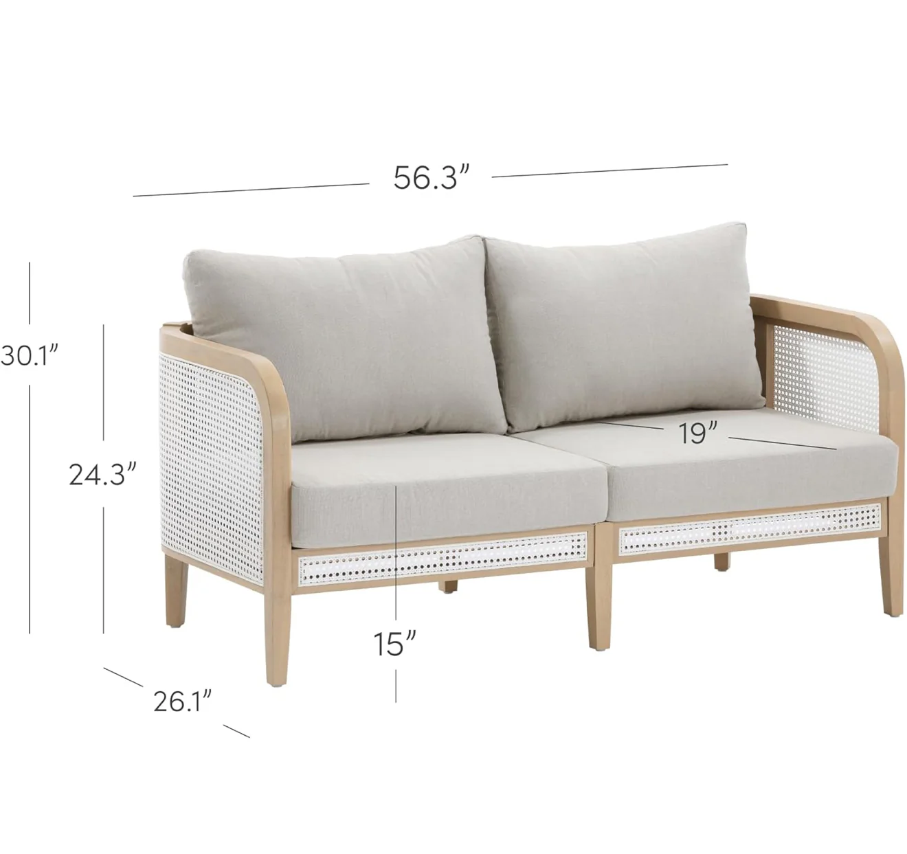 Juego de muebles bohemios para exteriores, 1 sofá biplaza de ratán y 2 sillas de salón para patio, muebles de madera de acacia maciza con tapicería de lino gris o crudo