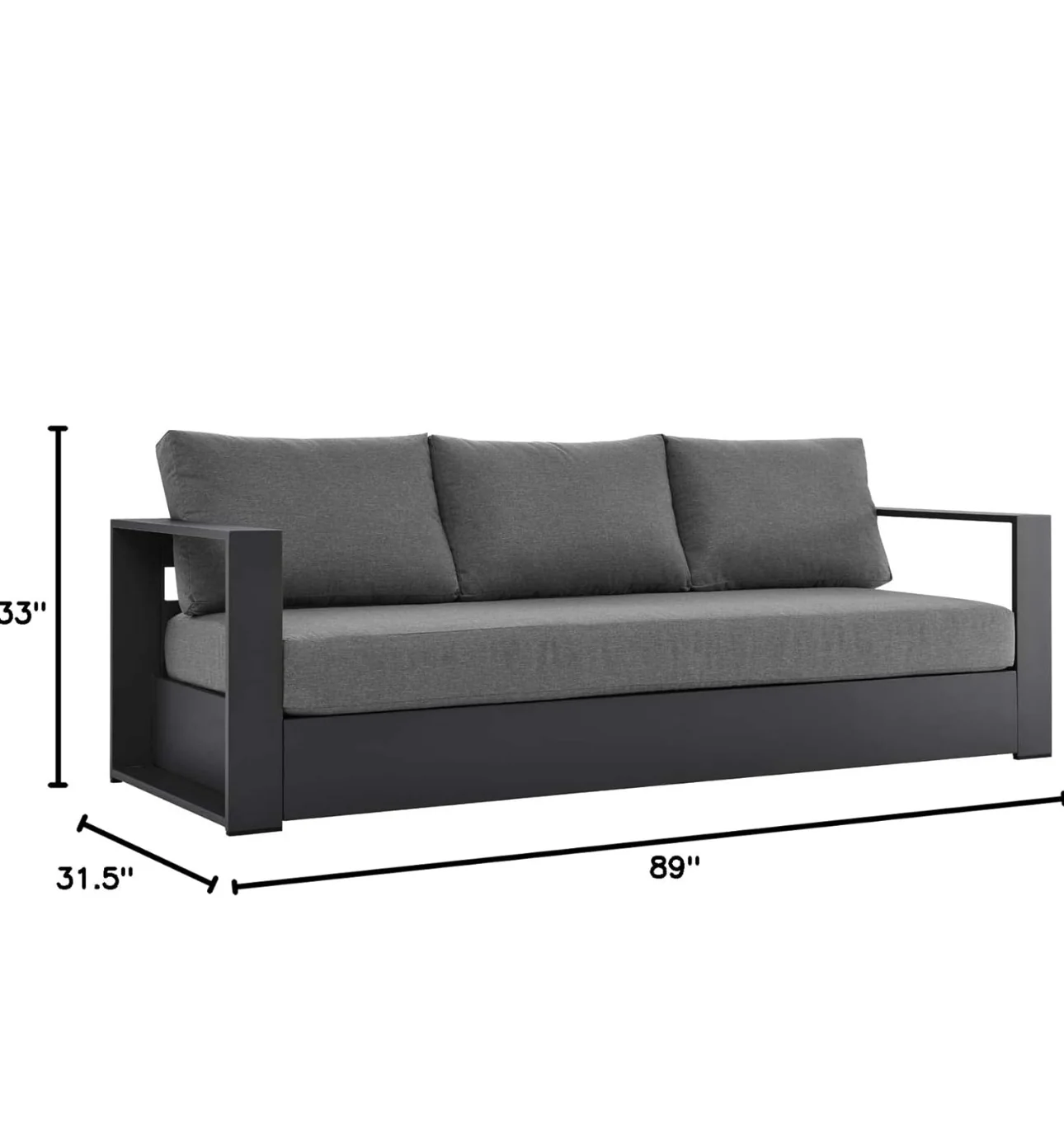 Moderna sala construido con aluminio duradero con recubrimiento en polvo, que dispensa elegancia contemporánea en todos sus espacios de salón al aire libre. Tahoe es perfecto para descansar junto a la piscina con un asiento y cojines de respaldo a prueba de sol y resistencia al agua. Los cojines extraíbles y resistentes a las manchas hacen que este sofá de exterior sea de bajo mantenimiento y de alto rendimiento.