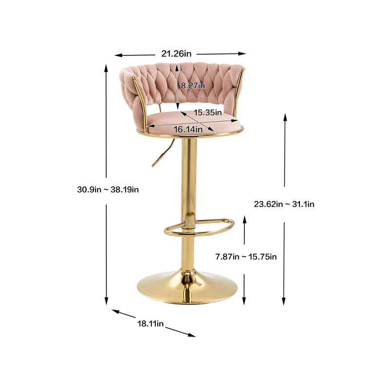 Giratorio de 360 ° y altura ajustable - La altura del asiento se puede ajustar de 23,62'' a 31,1'' por la manija del elevador de aire, haciendo coincidir fácilmente con la altura de los diferentes mostradores de la barra.