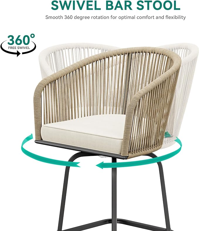 - Uso versátil en interiores y exteriores: el estilo vanguardista añade un toque de elegancia a este juego de taburetes de bar de 4 piezas, proporcionando un asiento ideal para el patio, jardín de cocina al aire libre, porche, área de barbacoa y áreas interiores