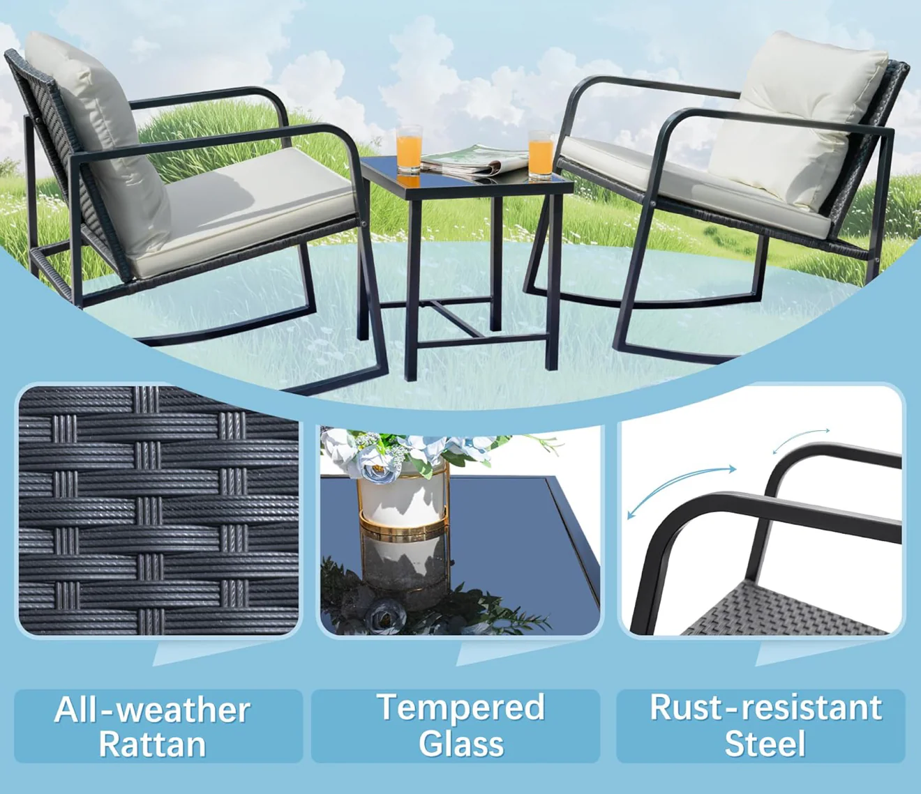 - Fácil de limpiar: los cojines de patio cuentan con fundas de poliéster extraíbles para una fácil limpieza; el vidrio templado en la mesa añade más comodidad para limpiar si alguna bebida cae encima.