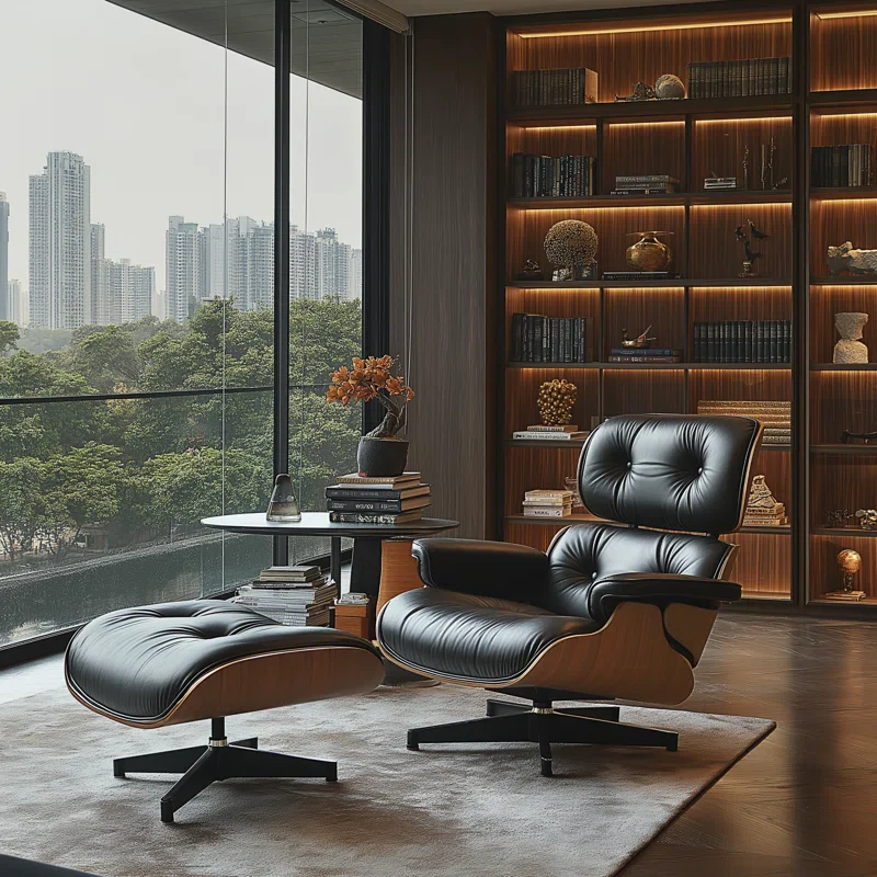 Aporta un toque de lujo moderno a tu oficina o estudio con este exquisito sillón. Imagina romper el trabajo para disfrutar de un momento de paz, el cuero suave te acuna mientras te reclinas en su ángulo de inclinación ergonómico. La otomana a juego te invita a poner los pies en alto, y la robusta base de nogal garantiza la durabilidad, ya que soporta hasta 330 libras. Esta silla no solo es funcional, es una pieza de declaración que combina estilo y comodidad, haciendo que cada momento se sienta como un merecido escape.